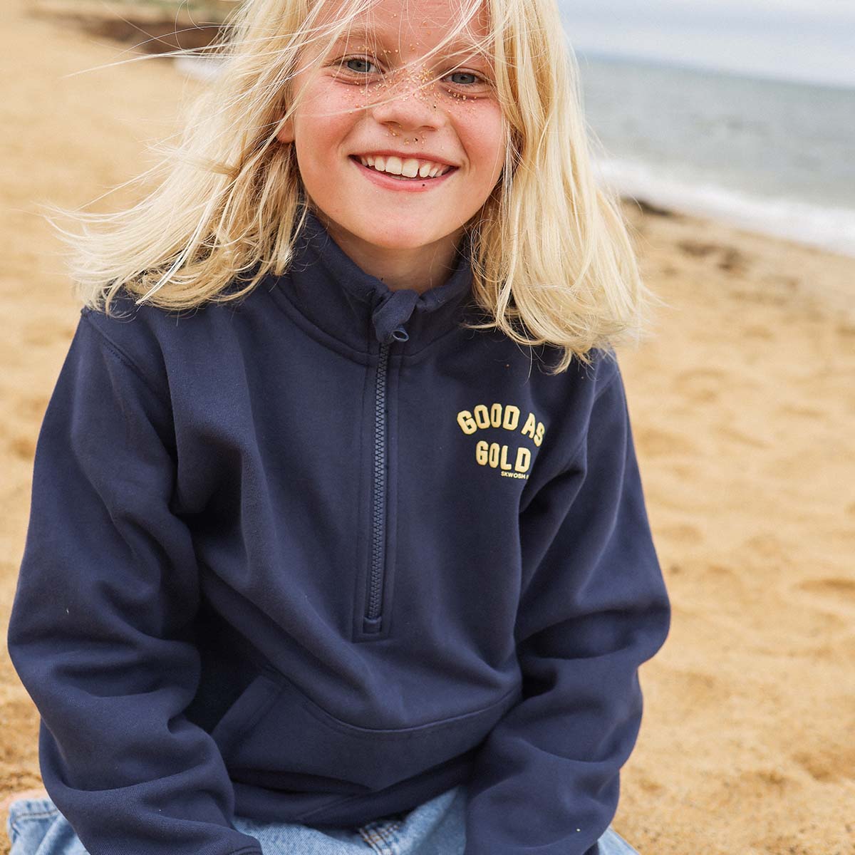 Good As Gold Half Zip Sweat in Navy